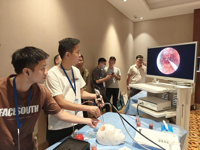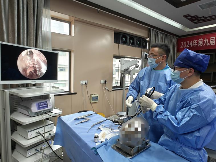 大會(huì)期間,“神經(jīng)內(nèi)鏡下腦出血模擬清除培訓(xùn)班”同步進(jìn)行,廣東醫(yī)科大學(xué)附屬醫(yī)院肖健齊教授等專家現(xiàn)場(chǎng)進(jìn)行理論授課與實(shí)操演示,學(xué)員們認(rèn)真學(xué)習(xí)理論知識(shí),積極參與實(shí)操練習(xí),整個(gè)培訓(xùn)班學(xué)習(xí)氛圍濃厚。